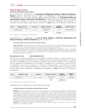 Artículo 74: “Las Dependencias, Entidades o Ayuntamientos ejecutores, tendrán la obligación de supervisar y vigilar todo el proceso