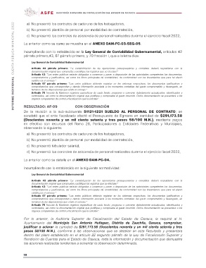 INFORME INDIVIDUAL CUENTA PÚBLICA MUNICIPAL 2022 a) No presentó los contratos de cada uno de los trabajadores,