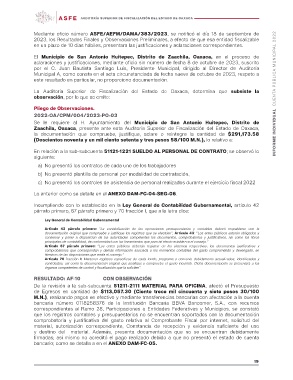 Mediante oficio número ASFE/AEFM/DAMA/383/2023, se notificó el día 18 de septiembre de INFORME INDIVIDUAL CUENTA PÚBLICA MUNICIPAL 2022