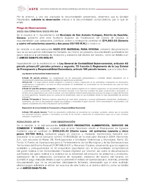 Por lo anterior, y una vez analizada la documentación presentada, determina que la Entidad INFORME INDIVIDUAL CUENTA PÚBLICA MUNICIPAL 2022