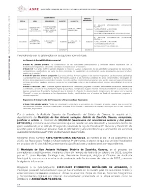 INFORME INDIVIDUAL CUENTA PÚBLICA MUNICIPAL 2022 COMPROBANTE IMPORTE OBSERVACIONES
