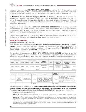 INFORME INDIVIDUAL CUENTA PÚBLICA MUNICIPAL 2022 Mediante oficio número ASFE/AEFM/DAMA/383/2023, se notificó el día 18 de septiembre de