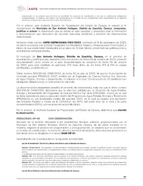 Por lo anterior, la Auditoría Superior de Fiscalización del Estado de Oaxaca, determina que atendió