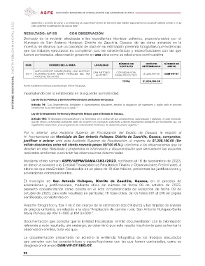 INFORME INDIVIDUAL CUENTA PÚBLICA MUNICIPAL 2022 siguientes a la fecha de corte, y la residencia de supervisión dentro de los ocho días hábiles siguientes a su recepción deberá revisar y en su