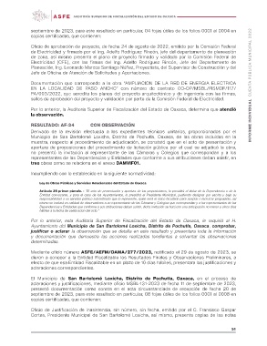 Mediante oficio número ASFE/AEFM/DAMA/277/2023, notificado el 29 de agosto de 2023, se