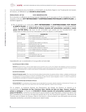 pesos 51/100 M.N.), conforme a la observación que se detalla en este Resultado y presentara dentro del