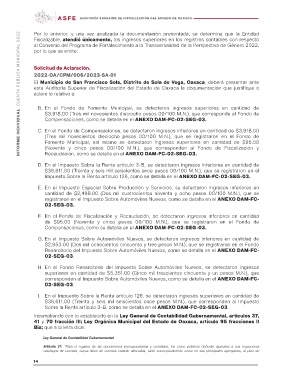 INFORME INDIVIDUAL CUENTA PÚBLICA MUNICIPAL 2022 AUDITORÍA SUPERIOR DE FISCALIZACIÓN DEL ESTADO DE OAXACA