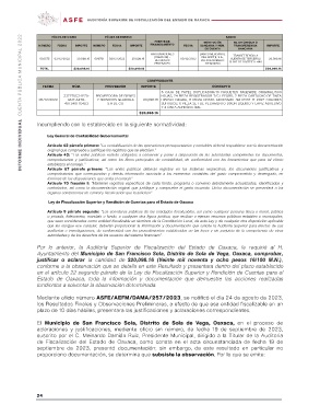 en el artículo 22 segundo párrafo de la Ley de Fiscalización Superior y Rendición de Cuentas para el