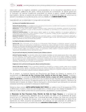 INFORME INDIVIDUAL CUENTA PÚBLICA MUNICIPAL 2022 AUDITORÍA SUPERIOR DE FISCALIZACIÓN DEL ESTADO DE OAXACA