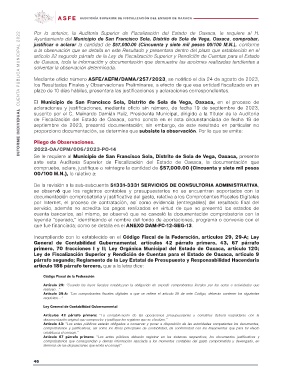 Por lo anterior, la Auditoria Superior de Fiscalización del Estado de Oaxaca, le requiere al H.