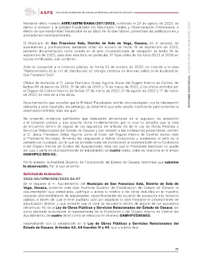 Mediante oficio número ASFE/AEFM/DAMA/257/2023, notificado el 24 de agosto de 2023, se