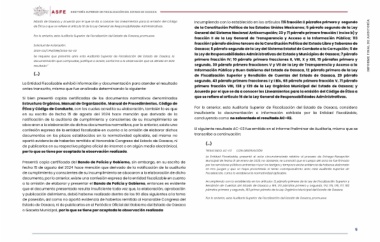 o Gaceta Municipal, por lo que se tiene por aceptada la observación realizada Por lo anterior, esta Auditoría Superior de Fiscalización del Estado de Oaxaca, promueve: