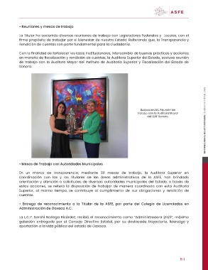 • Entrega de reconocimiento a la Titular de la ASFE, por parte del Colegio de Licenciados en