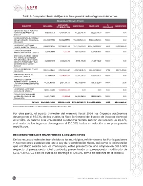 Por otra parte, al cuarto trimestre del ejercicio fiscal 2024, los Órganos Autónomos