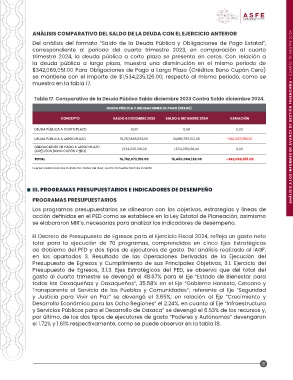 Tabla 17. Comparativo de la Deuda Pública Saldo diciembre 2023 Contra Saldo diciembre 2024.