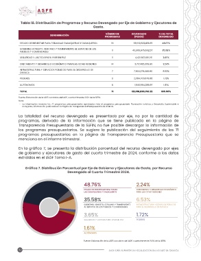 Tabla 18. Distribución de Programas y Recurso Devengado por Eje de Gobierno y Ejecutores de
