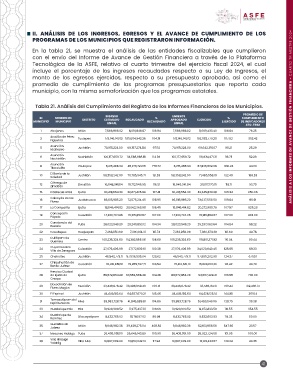 Tabla 21. Análisis del Cumplimiento del Registro de los Informes Financieros de los Municipios.