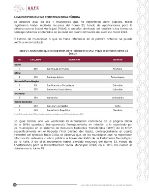 b) MUNICIPIOS QUE NO REGISTRAN OBRA PÚBLICA