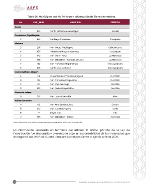 Tabla 26. Municipios que No Reflejaron Información de Bienes Inmuebles.