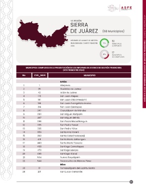 MUNICIPIOS CUMPLIDOS EN LA PRESENTACIÓN DE LOS INFORMES DE AVANCE DE GESTIÓN FINANCIERA