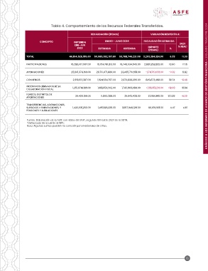 Tabla 4. Comportamiento de los Recursos Federales Transferidos. ANÁLISIS A LOS INFORMES DE AVANCE DE GESTIÓN FINANCIERA - SEGUNDO TRIMESTRE 2024