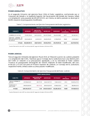 Tabla 8. Comportamiento del Ejercicio Presupuestal del Poder Judicial.