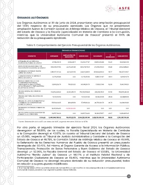 Tabla 9. Comportamiento del Ejercicio Presupuestal de los Órganos Autónomos.
