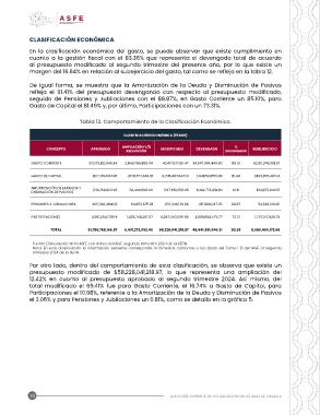 Tabla 12. Comportamiento de la Clasificación Económica.