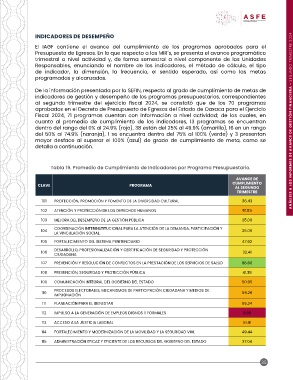 Tabla 19. Promedio de Cumplimiento de Indicadores por Programa Presupuestario.