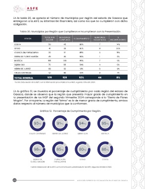 Oaxaca, donde se observa que la región que presenta mayor grado de cumplimiento en