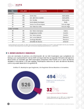 fiscal 2024, se constató que 494 municipios presentan información en el rubro de Bienes