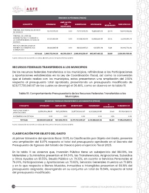 Tabla 10. Comportamiento Presupuestario de los Recursos Federales Transferidos a los