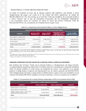 Tabla 16. Comparativo de la Deuda Pública y Otras Obligaciones.