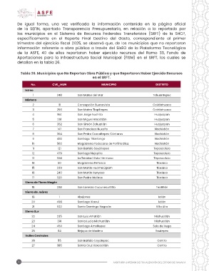 Tabla 26. Municipios que No Reportan Obra Pública y que Reportaron Haber Ejercido Recursos