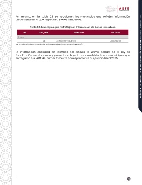 Tabla 28. Municipios que No Reflejaron Información de Bienes Inmuebles.