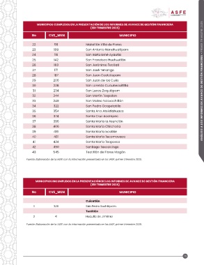 MUNICIPIOS INCUMPLIDOS EN LA PRESENTACIÓN DE LOS INFORMES DE AVANCE DE GESTIÓN FINANCIERA