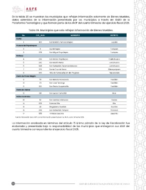 En la tabla 26 se muestran los municipios que reflejan información solamente de Bienes Muebles,