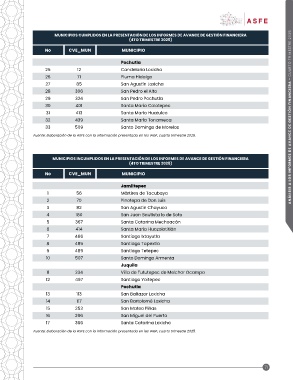 MUNICIPIOS INCUMPLIDOS EN LA PRESENTACIÓN DE LOS INFORMES DE AVANCE DE GESTIÓN FINANCIERA