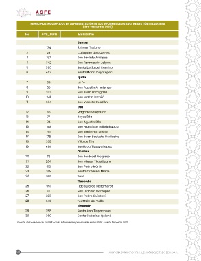 MUNICIPIOS INCUMPLIDOS EN LA PRESENTACIÓN DE LOS INFORMES DE AVANCE DE GESTIÓN FINANCIERA