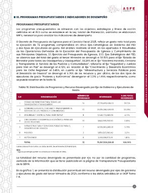 III. PROGRAMAS PRESUPUESTARIOS E INDICADORES DE DESEMPEÑO ANÁLISIS A LOS INFORMES DE AVANCE DE GESTIÓN FINANCIERA - TERCER TRIMESTRE 2025