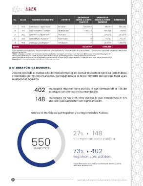402 municipios registran obra pública, lo que corresponde al 73% del