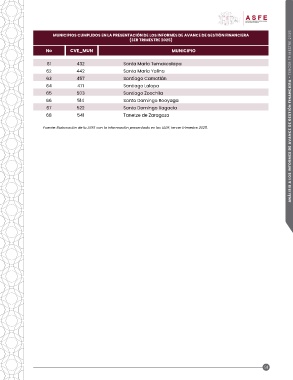 MUNICIPIOS CUMPLIDOS EN LA PRESENTACIÓN DE LOS INFORMES DE AVANCE DE GESTIÓN FINANCIERA ANÁLISIS A LOS INFORMES DE AVANCE DE GESTIÓN FINANCIERA - TERCER TRIMESTRE 2025