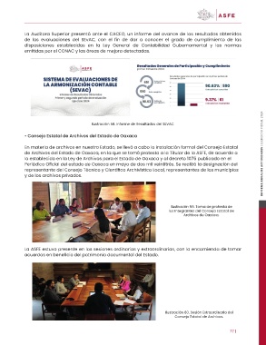 de las evaluaciones del SEvAC, con el fin de dar a conocer el grado de cumplimiento de las