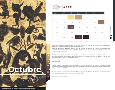 LUN 5 12 19 26 1 Día del 10 Día de 15 Día del Mayo Obra: Rescoldos de Oaxaca | Autor: Sergio Hernández