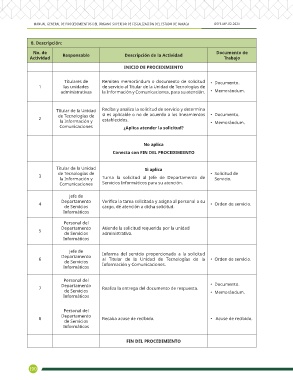 4 Departamento Verifica la tarea solicitada y asigna al personal a su • Orden de servicio.