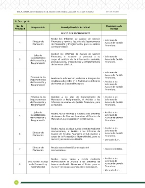 8 de la Planeación y Avance de Gestión Financiera al Titular, para su Avance de Gestión