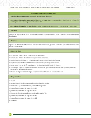 1. Nombre del procedimiento: Reporte final de recomendaciones.