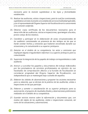 19. Realizar las auditorias, visitas e inspecciones, para la cual fue comisionado,