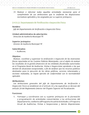 Las atribuciones generales del Jefe de Departamento de Verificación e