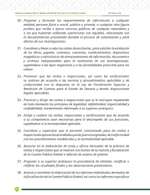 33. Practicar y dirigir las visitas e inspecciones que se le instruyan respetando